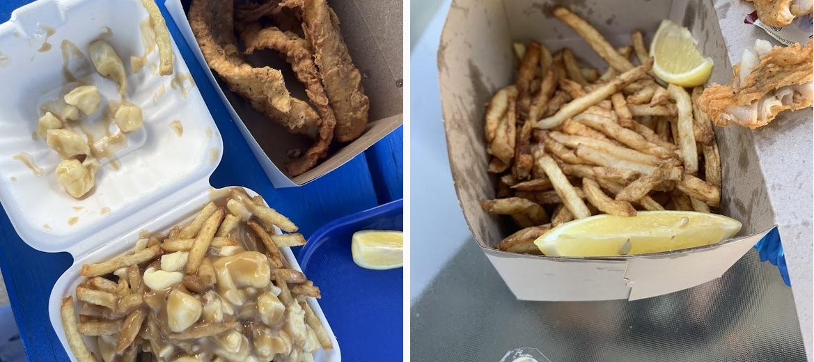 Food was very good we ordered a family poutine and 5 pieces of fish and 2 drinks fries were cut nicely not to thick and not to thin plenty of cheese curds and the fish was perfectly coated not to thick coat us $40 definitely going to be my new go to spot